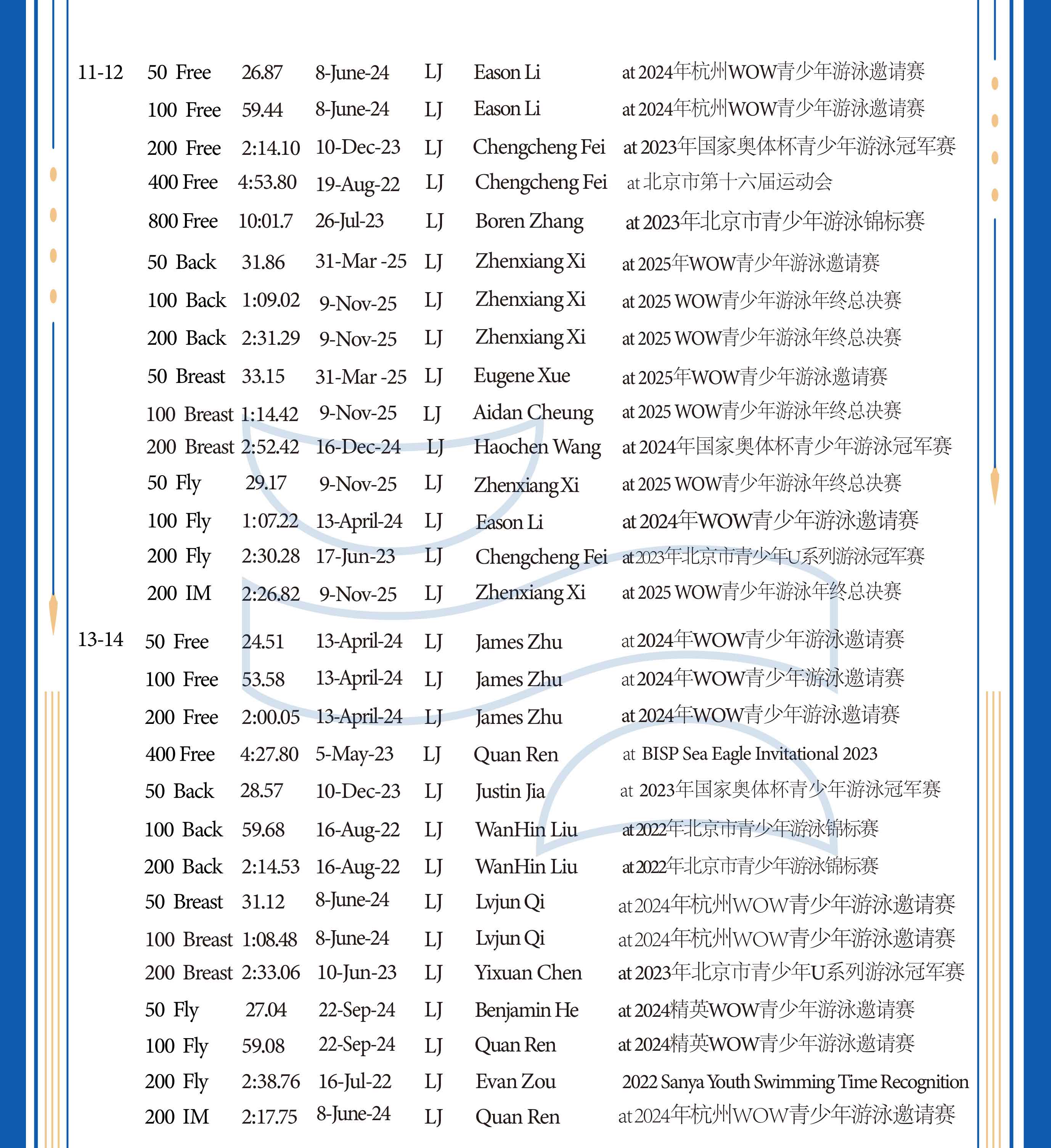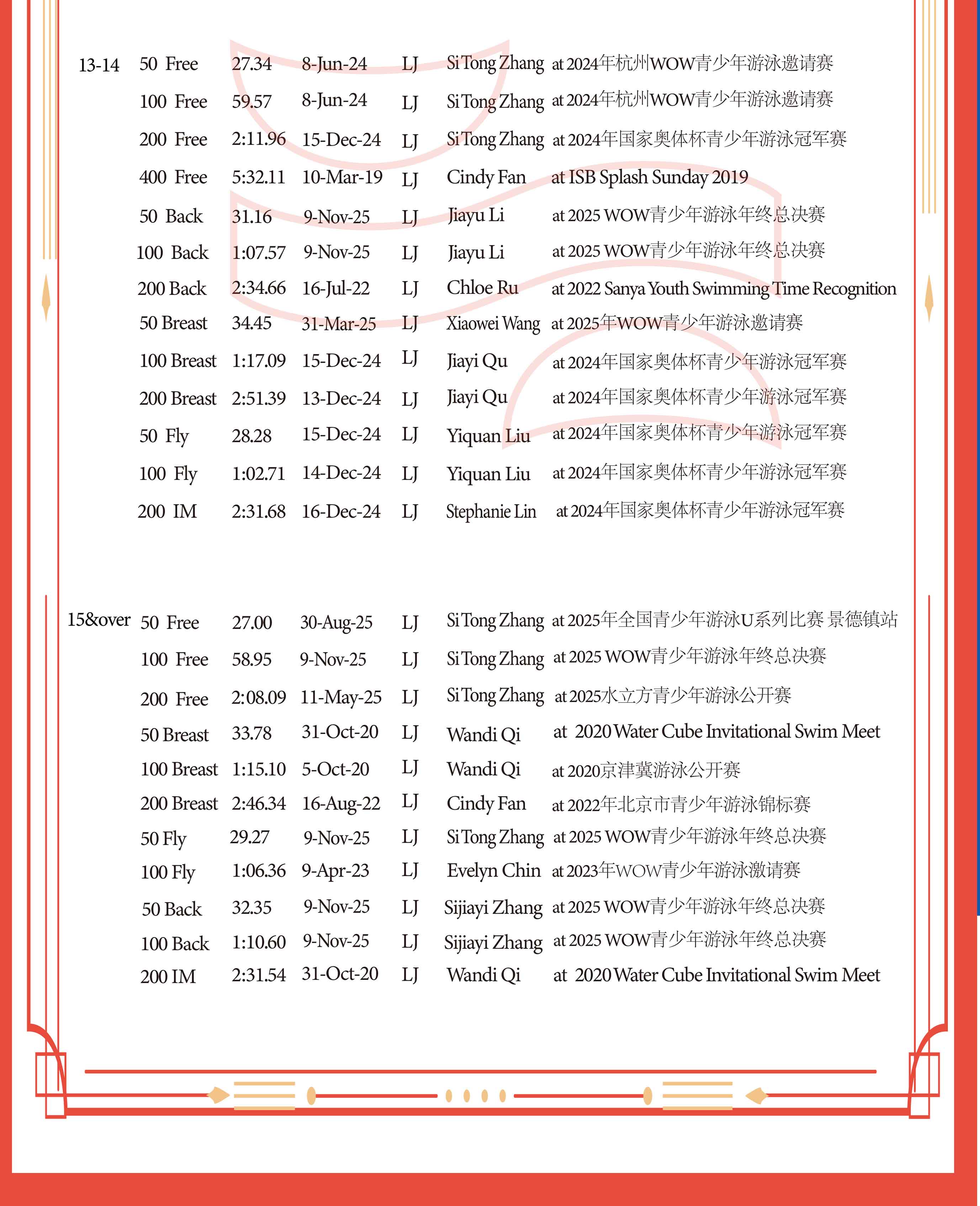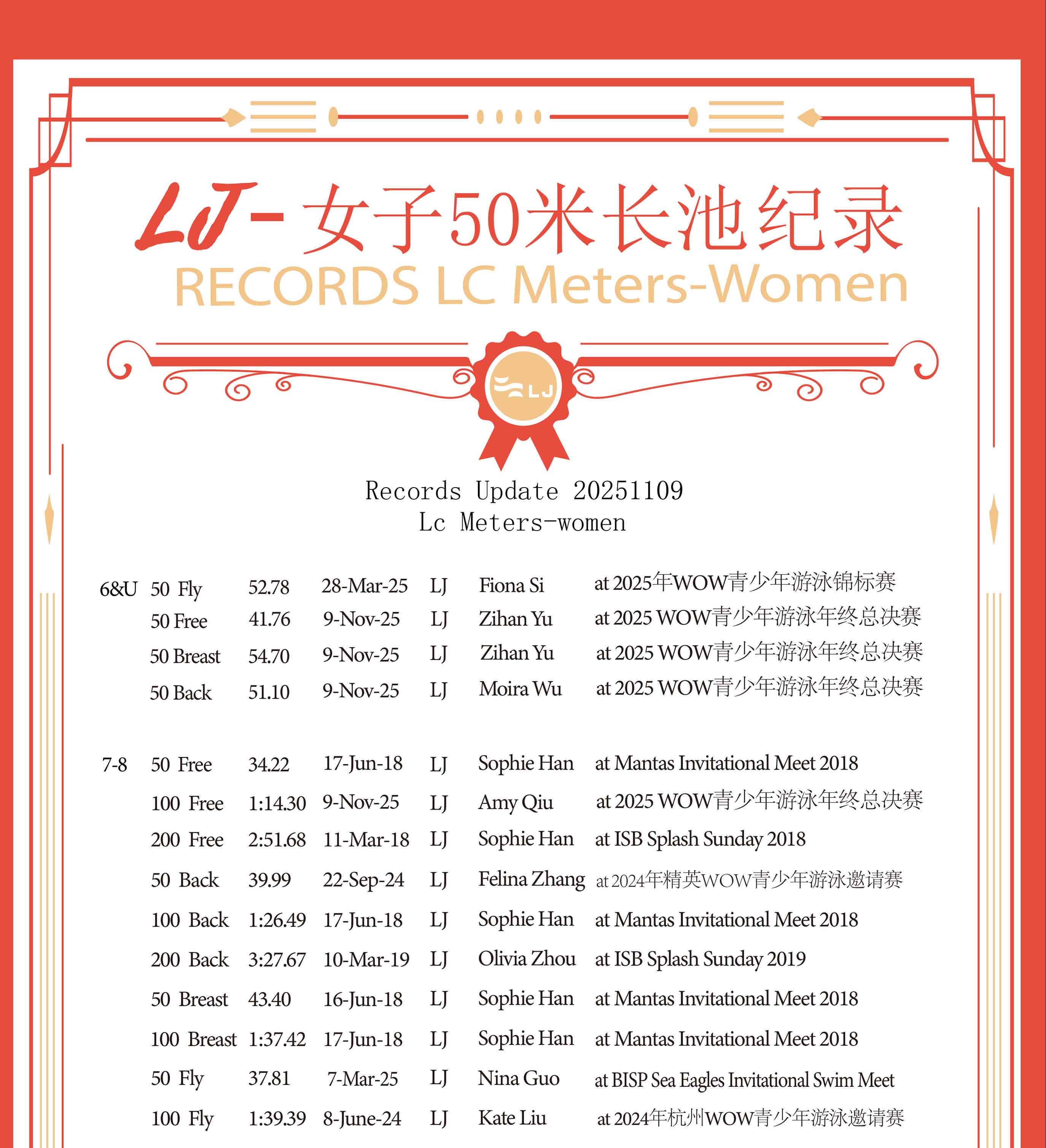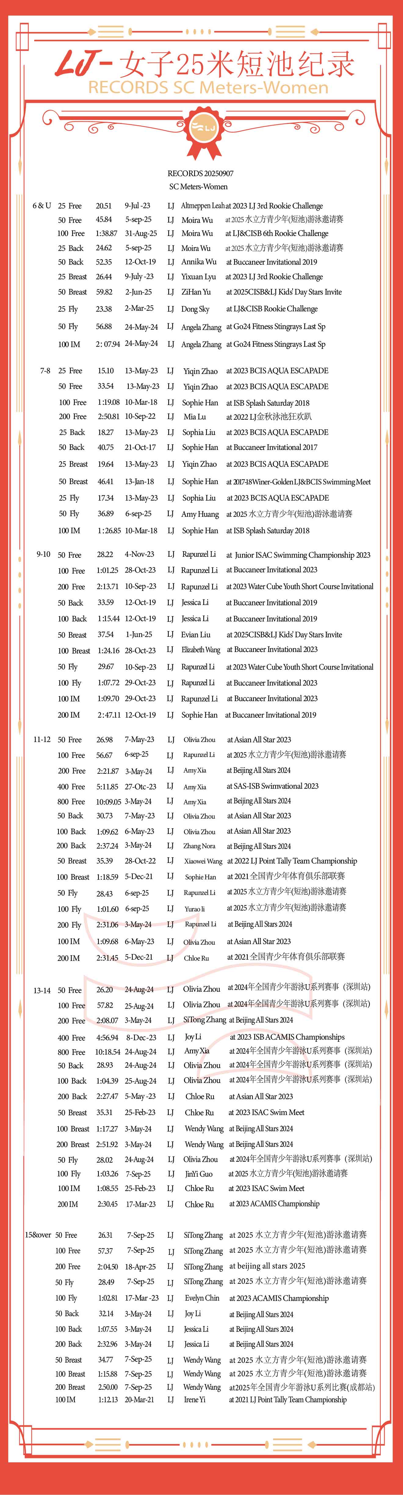 LJ纪录-25M短池